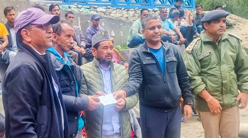 देहरादून, न्यूज़ आई : मुख्यमंत्री पुष्कर सिंह धामी के निर्देश पर आज धराली गांव के आपदा प्रभावित परिवारों को पांच-पांच लाख रुपये की सहायता राशि का वितरण शुरू कर दिया गया है। जिलाधिकारी प्रशांत आर्य और क्षेत्रीय विधायक सुरेश चौहान ने सोमवार को धराली गांव में जाकर आपदा प्रभावितों को सहायता राशि के चेक वितरित किए। धराली में आपदा प्रभावित 98 प्रभावितों के लिए सहायता राशि के चेक मौके पर वितरण के लिए भेजे गए थे।  प्रशासन द्वारा बनाए गए राहत शिविरों में आज प्रभावित लोगों के साथ जिलाधिकारी प्रशांत आर्य, गंगोत्री विधायक सुरेश चौहान, गढ़वाल समन्वयक किशोर भट्ट ने भोजन किया। उन्होंने कहा कि शासन-प्रशासन दुख की इस घड़ी में पीड़ितों के साथ है। आपदा पीड़ितों की सहायता के लिए हर संभव कदम उठाए जा रहे हैं। प्रभावित क्षेत्र में आम जीवन को पटरी पर लाने के लिए सभी प्रयास किए जा रहे है। राहत शिविरों में प्रभावितों के रहने-खाने तथा चिकित्सा सहायता की समुचित व्यवस्था की गई है।