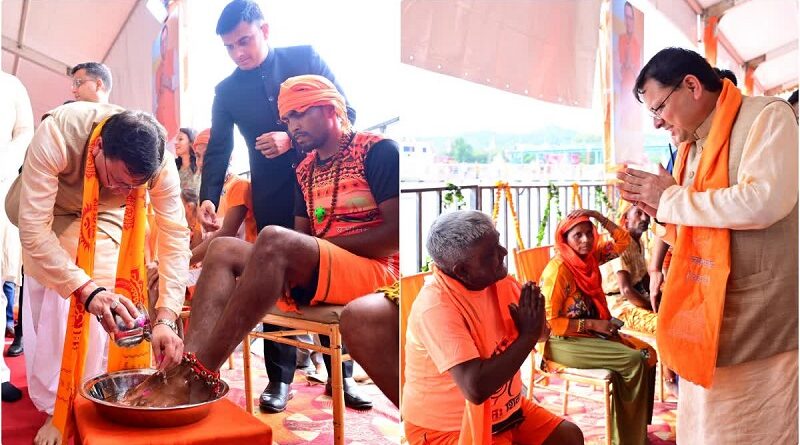हरिद्वार में सीएम धामी ने की कांवड़ियों की चरण वंदना