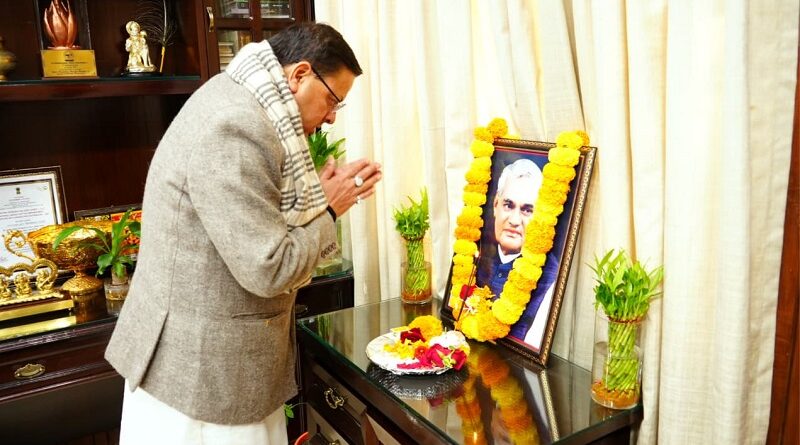 मुख्यमंत्री पुष्कर सिंह ने पूर्व प्रधानमंत्री, भारत रत्न अटल बिहारी वाजपेयी की जयंती पर किया नमन